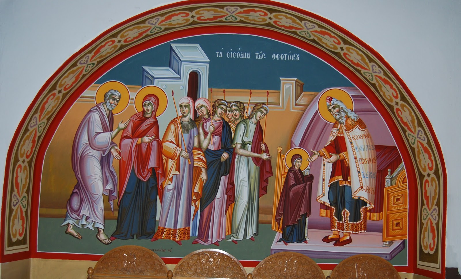 Και γνωρίζουμε για αυτή τη μέρα, την είσοδο της Παναγίας μας στο Ναό και την αφιέρωσή της στο Θεό εκ μέρους των ευλαβεστάτων γονέων της, του Ιωακείμ και της Άννης.